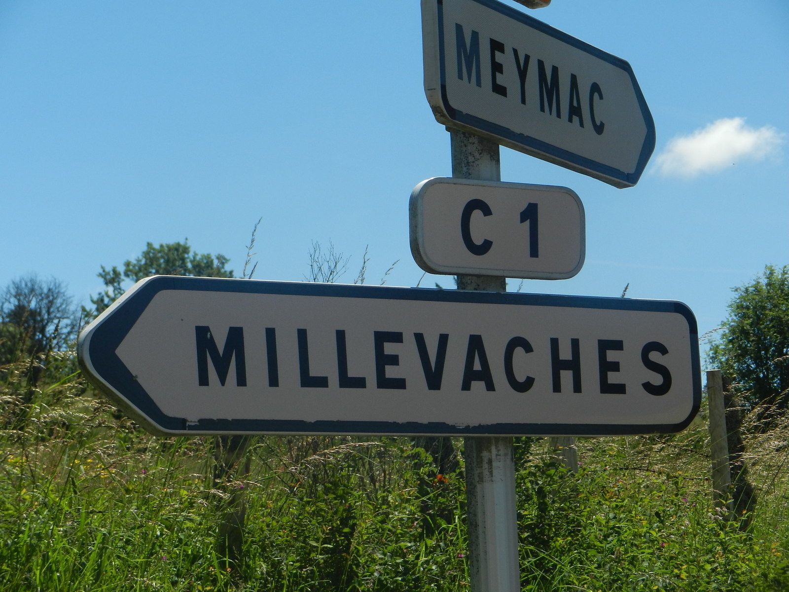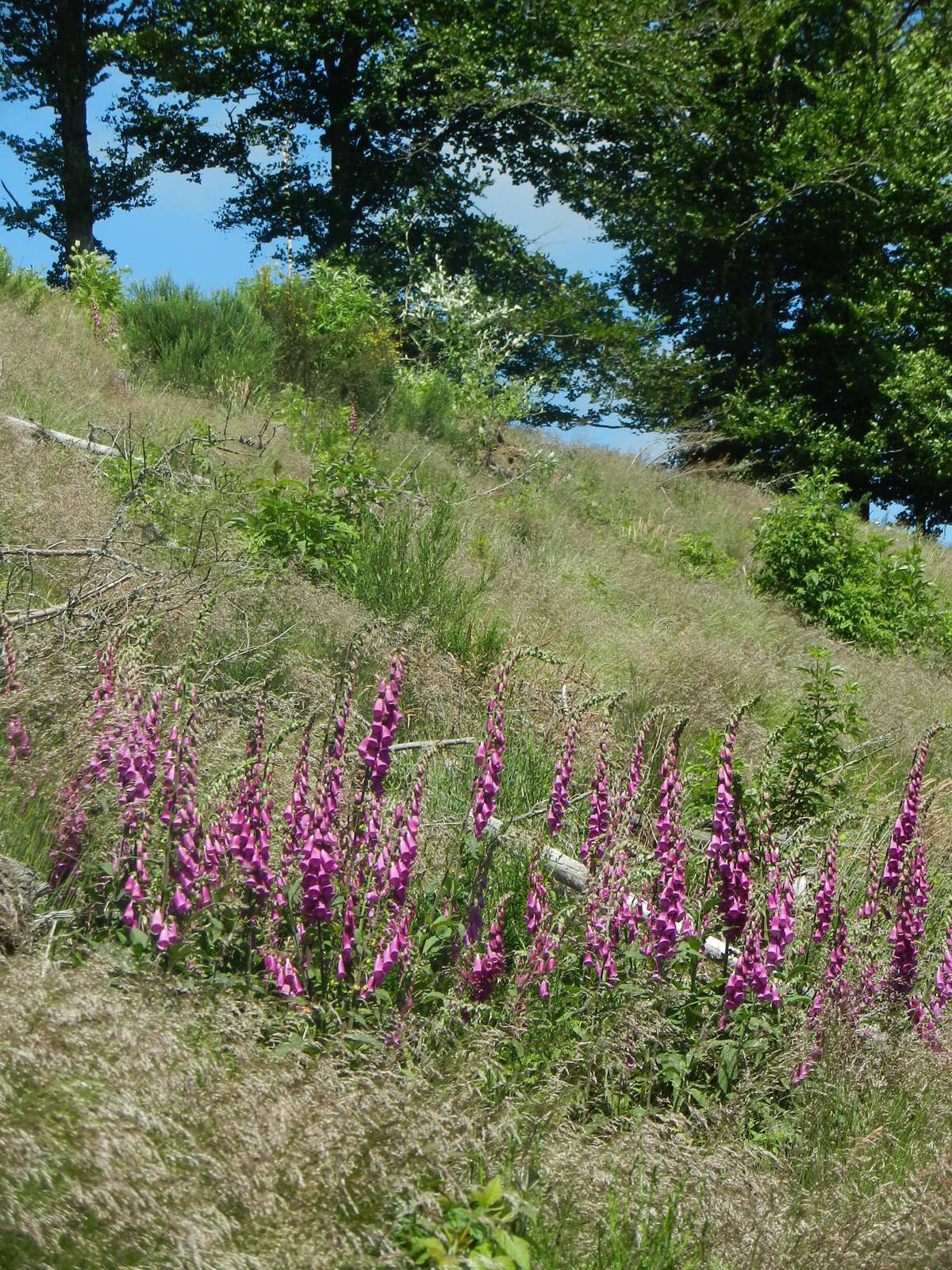 Les arbres refont leur apparition, marguerites, digitales et linaigrettes nous conduisent jusqu'à un poteau indicateur